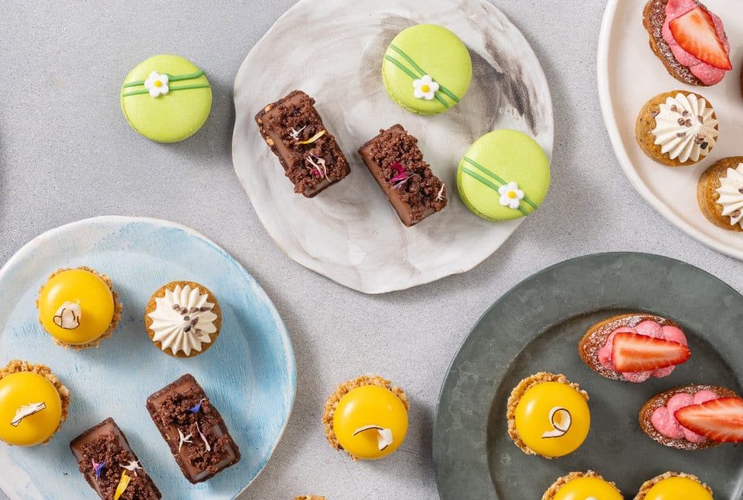 המוצרים מגיעים על גבי מגשים וסלסלות בצירוף מפיות