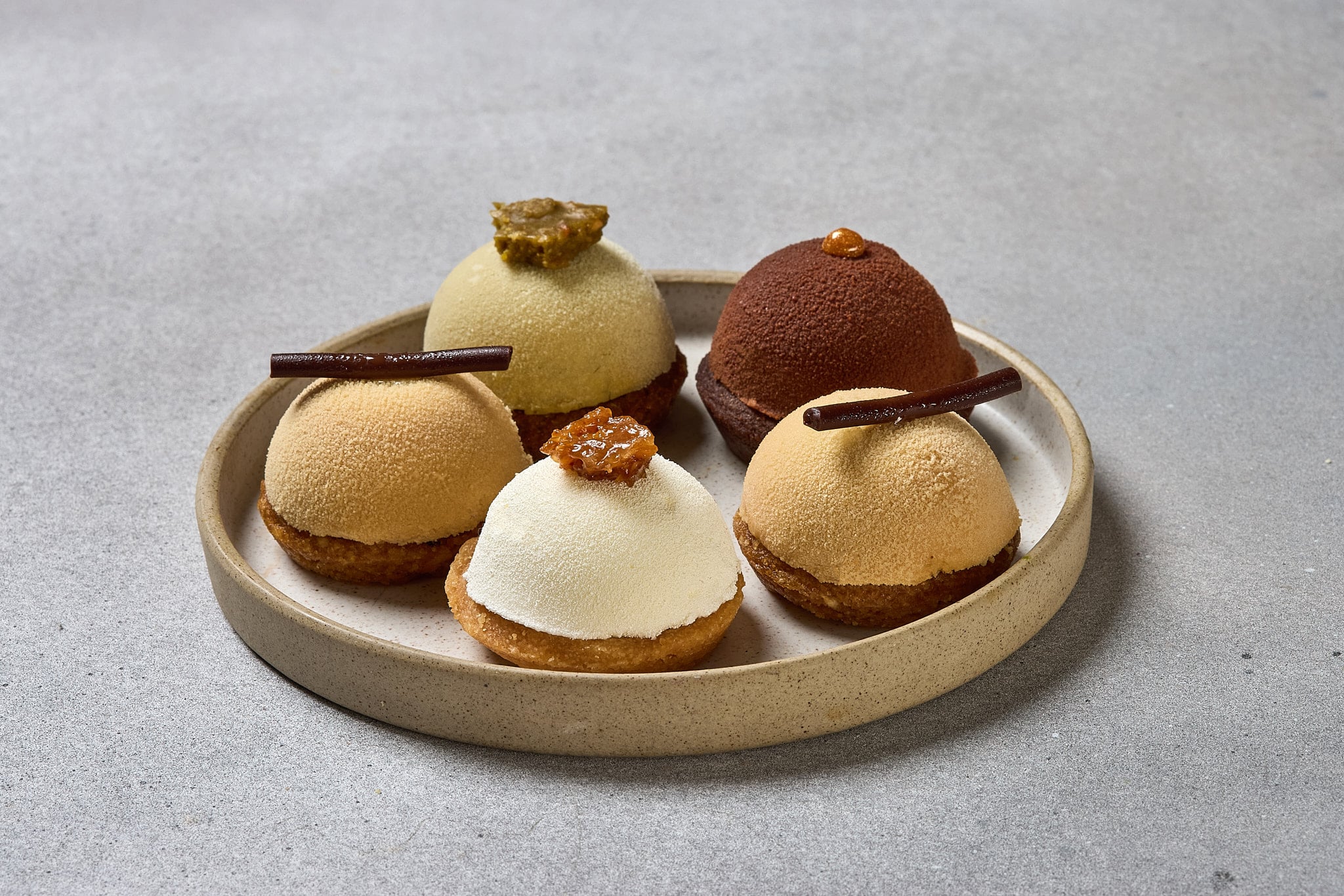 • מוס שוקולד מריר על עוגיית סבלה קקאו אגוזי לוז