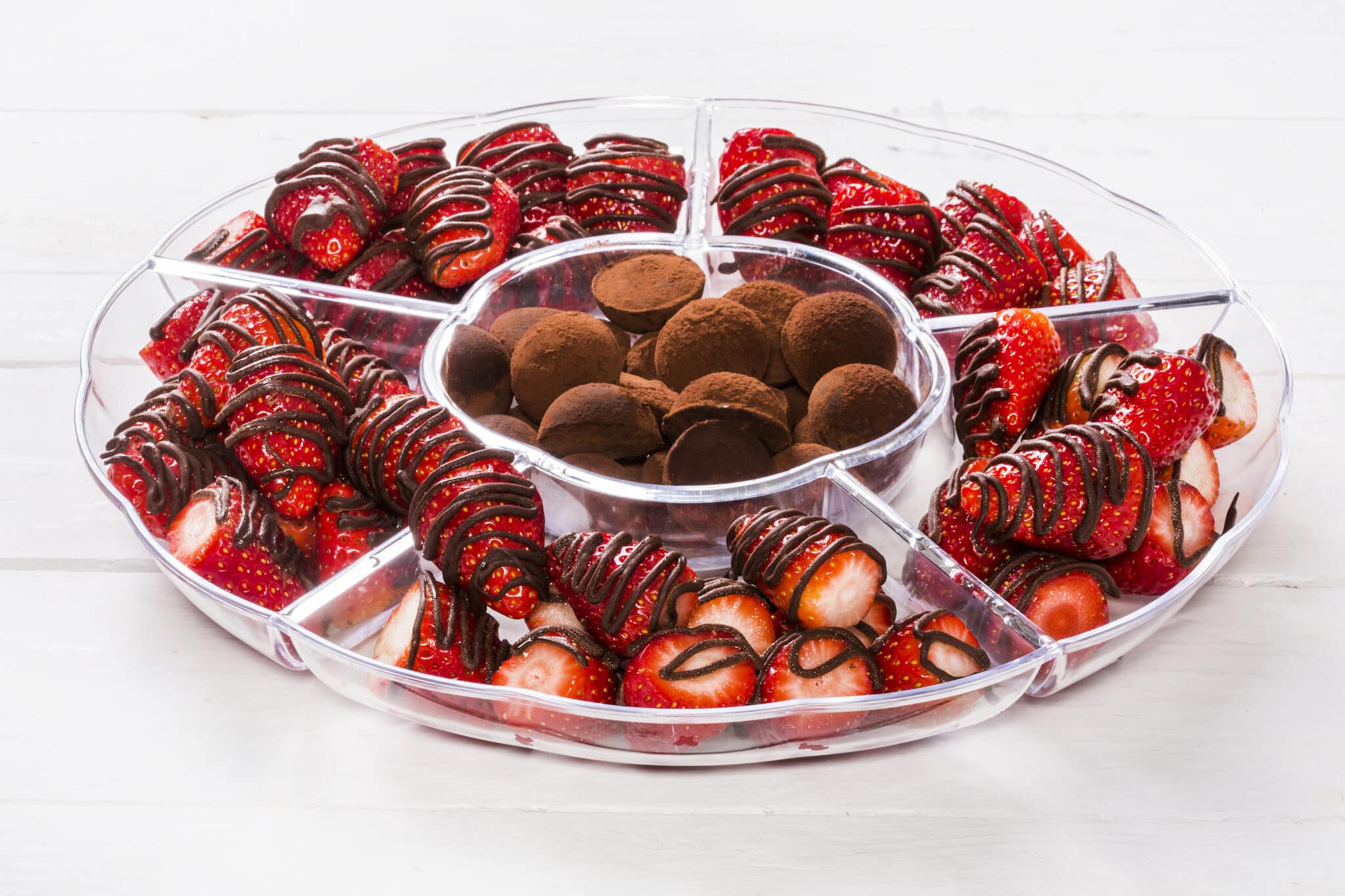 תותים יפהפיים מקושטים בפסים של שוקולד